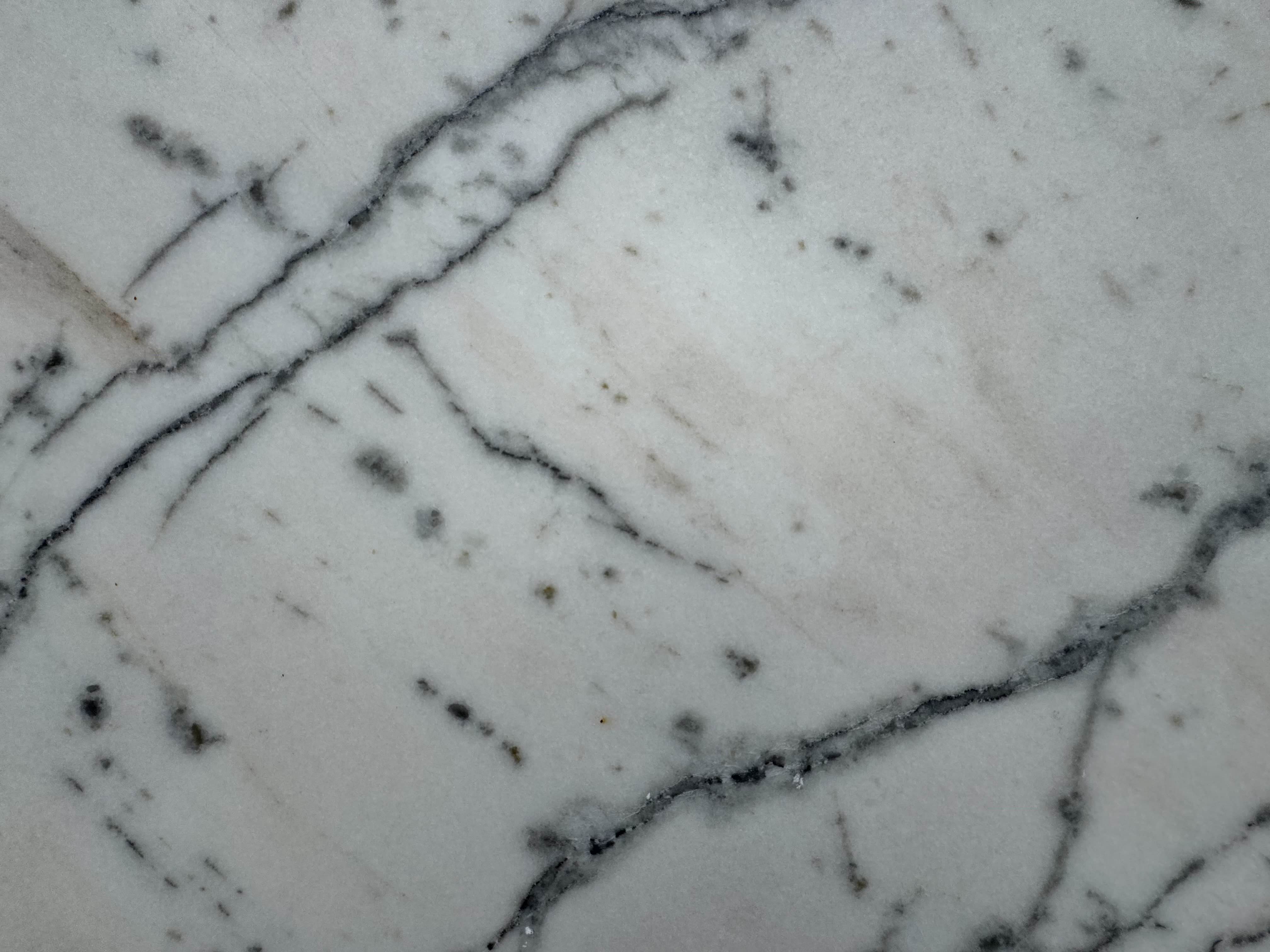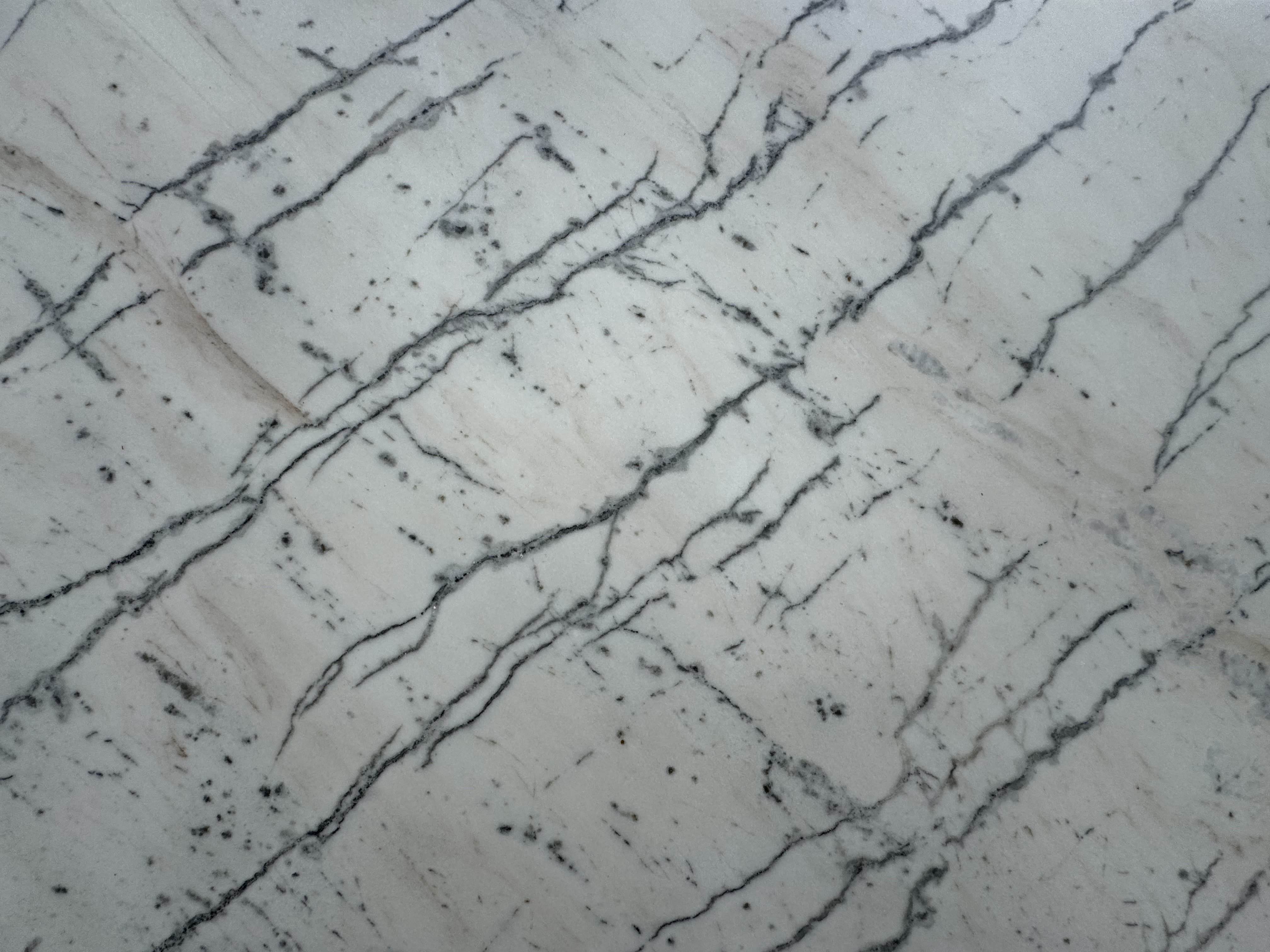 This refined white granite features a soft off‑white canvas brushed with delicate blush undertones and fine, pencil‑thin gray veining that moves diagonally across the slab, creating a subtle hand‑drawn effect. Quarried from granite‑rich regions such as Brazil, it combines the airy look of marble‑inspired veining with the strength and everyday practicality of true granite for active kitchens and baths. Its linear pattern visually elongates countertops and waterfall islands, while the gentle color play pairs beautifully with white or light gray cabinetry, warm woods, and matte black or brushed metal fixtures for a clean, tailored interior.