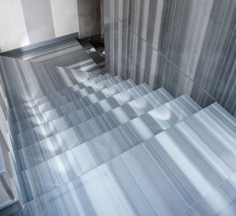 Striato Olympic marble is a distinctive natural stone celebrated for its bold, linear veining in shades of grey and white, commonly used in modern architectural and interior design for a clean, high-impact aesthetic. Quarried primarily in Turkey and Italy, it features a white to off-white background with prominent horizontal veins ranging from grey to beige or brown. This linear pattern distinguishes it from traditional marbles with more fluid veining. Available in polished, honed, brushed, or leathered finishes.